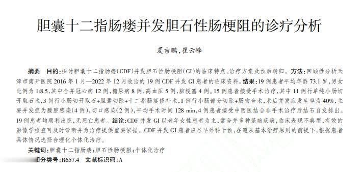参考资料[1]夏吉鹏.胆囊十二指肠瘘并发胆石性肠梗阻的诊疗分析,中国中西医结合外科杂志至尊配资,2024-11-05